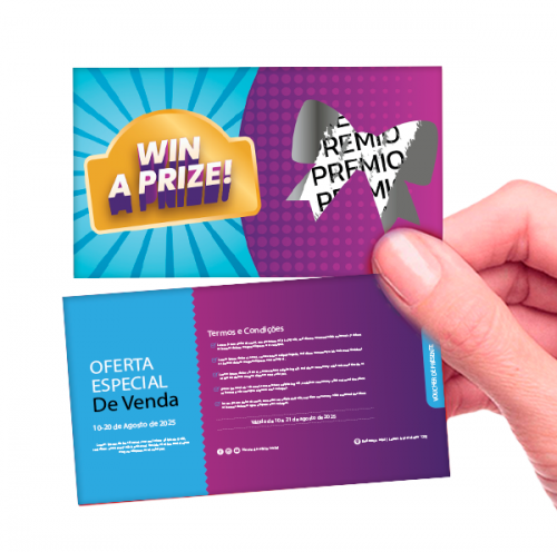As raspadinhas personalizadas oferecem um leque de oportunidades para seus clientes criarem campanhas promocionais impactantes e memoráveis, com a qualidade que só a TMX garante! Além de serem ideais para sorteios e promoções em pontos de venda, as raspadinhas podem ser utilizadas em eventos, feiras e ações de marketing direto que alcançam resultados expressivos. Ofereça aos seus clientes a possibilidade de personalizarem as raspadinhas com a identidade visual da marca, mensagens promocionais que encantam e prêmios atrativos que geram buzz.